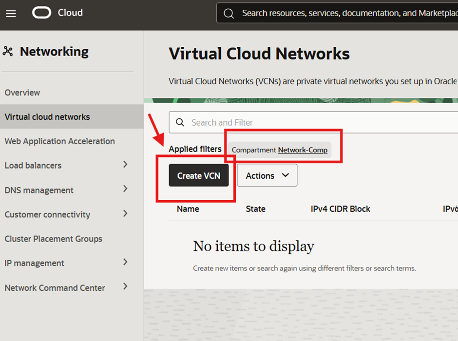 Step 2 — Select the Correct Compartment & Click “Create VCN”